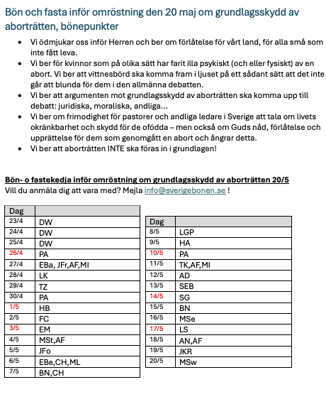 Bönepunkter inför beslutet 20 maj. Bön- och fastekedja.